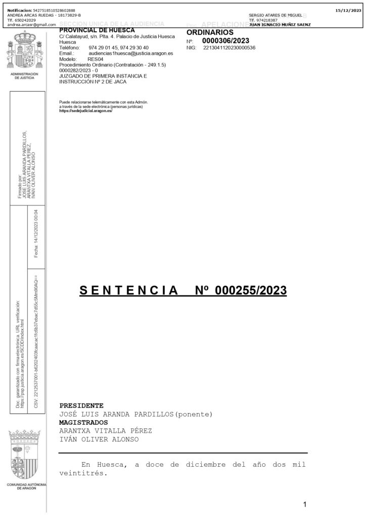 El Juzgado de 1ª Instancia nº5 de Huesca, ha notificado a Atares Abogados en el día de hoy 10-12-2021, Sentencia […]